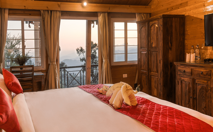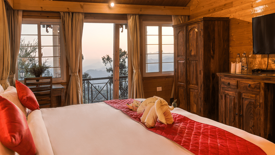 Thoughtfully designed stays featuring large windows, refined décor and sweeping valley views at one of the top resorts in Mukteshwar.